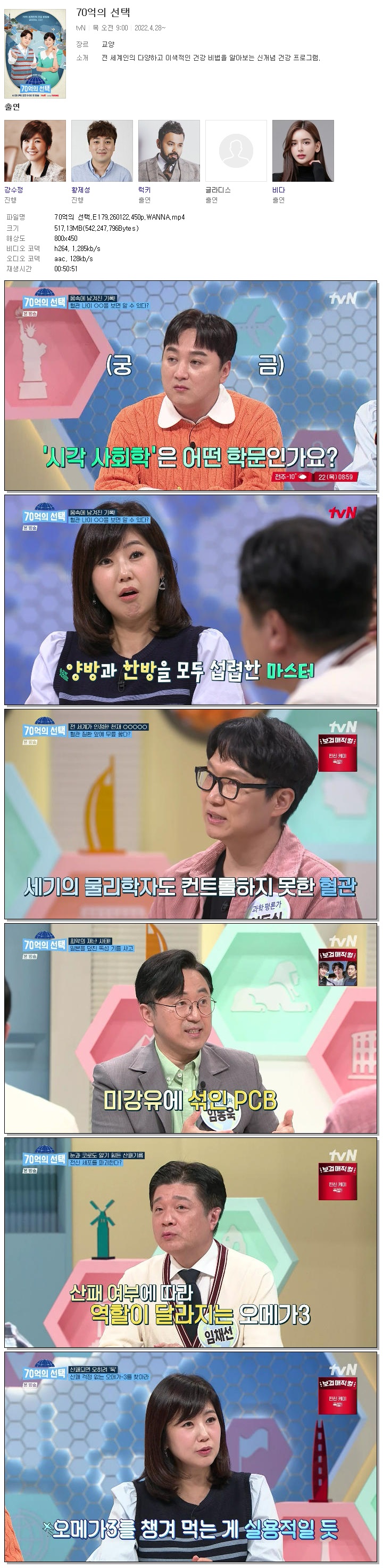 [TVN] 70억의 선택.E179.260122.450p.WANNA[강수정, 황제성].mp4 517.1 M 00:50:51 800x450