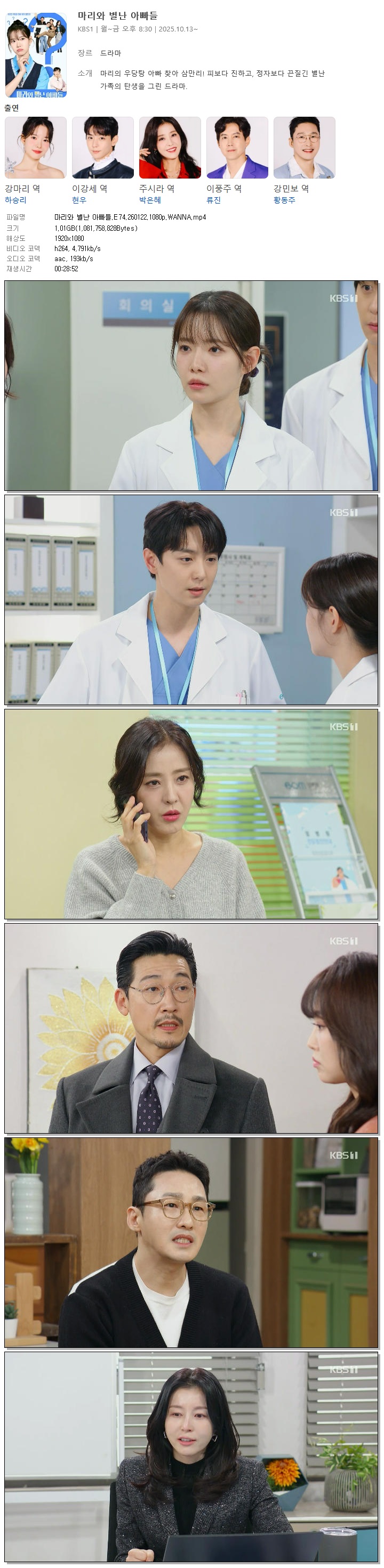 [KBS1] 마리와 별난 아빠들.E74.260122.1080p.WANNA[하승리, 현우] 다시보기 토렌트