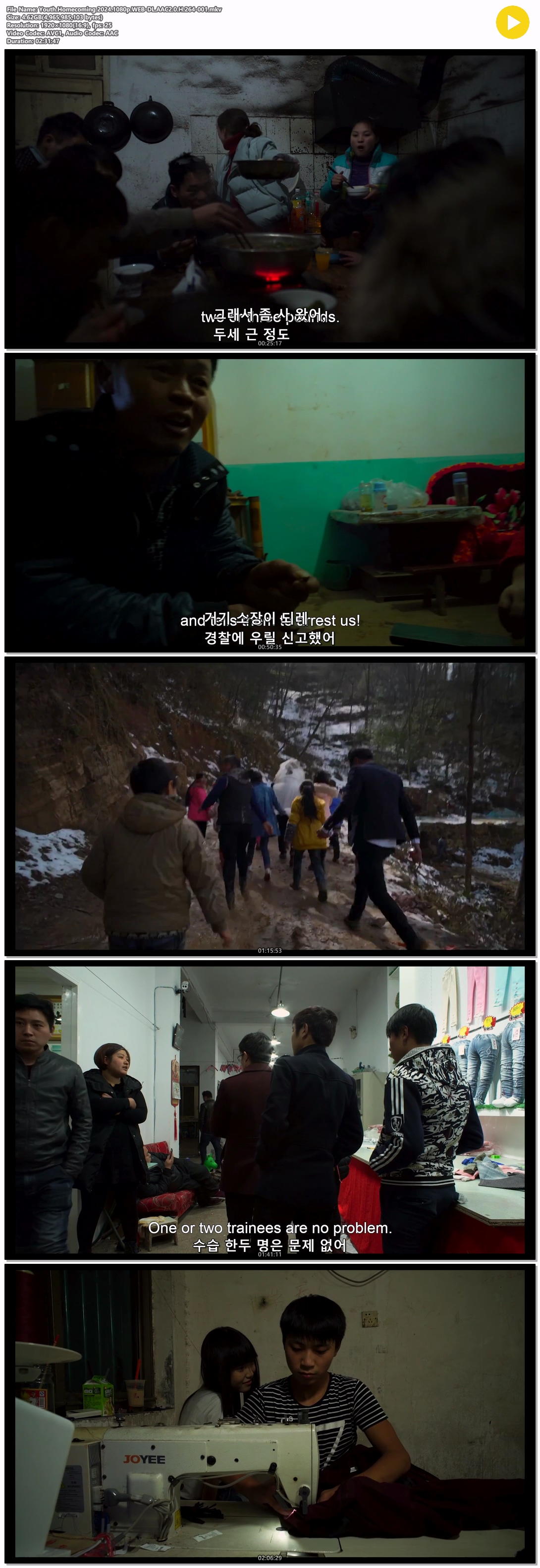 | Youth.Homecoming.2024.1080p.WEB-DL.AAC2.0.H.264-001.mkv | 4.6 G | 02:31:47 | 1920x1080 |