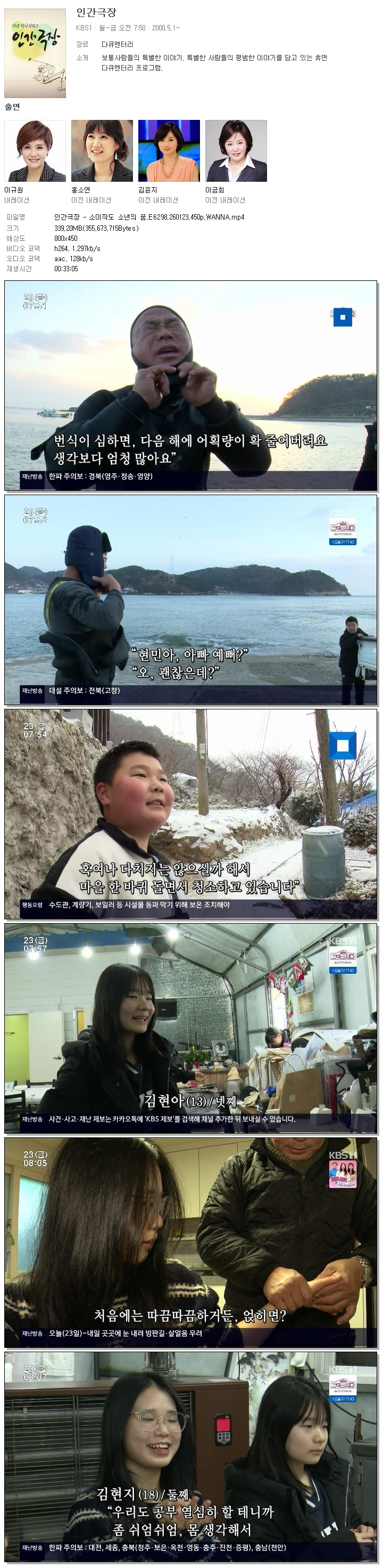 [KBS1] 인간극장.E6298.260123.450p.WANNA.mp4 339.2 M 00:33:05 800x450