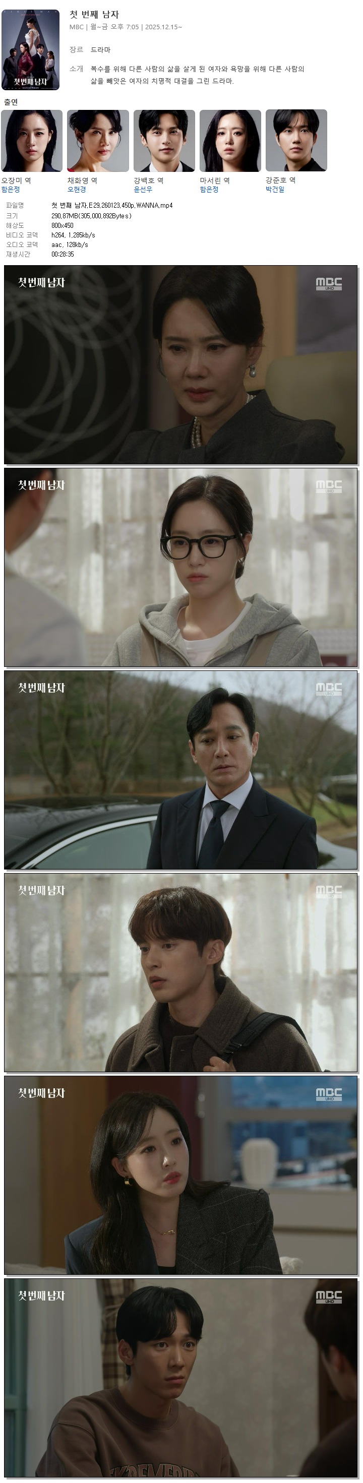 | [MBC] 첫 번째 남자.E29.260123.450p.WANNA[함은정, 오현경].mp4 | 290.9 M | 00:28:35 | 800x450 |