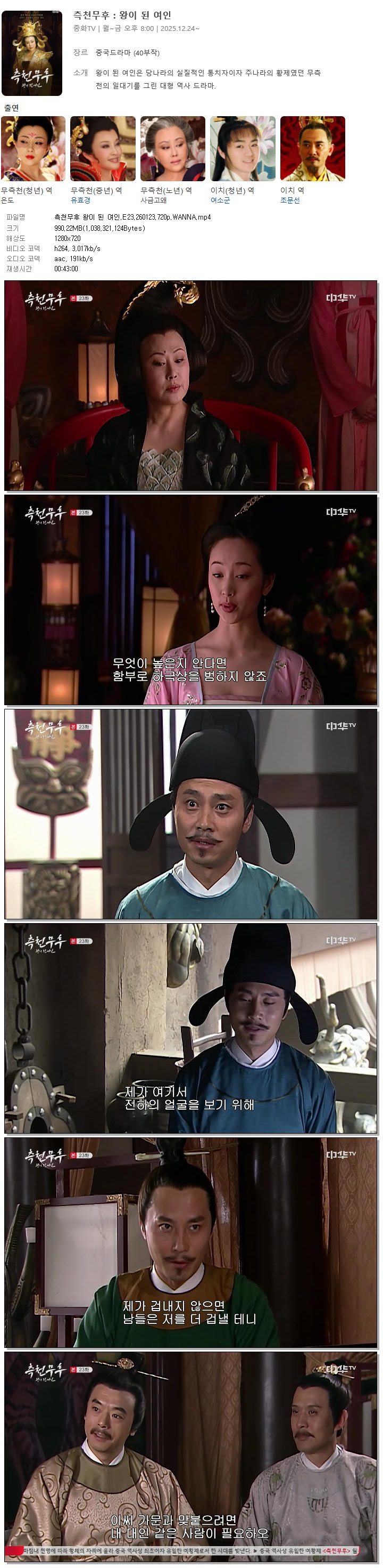 | [중화TV] 측천무후 왕이 된 여인.E23.260123.720p.WANNA[스친가오와].mp4 | 990.2 M | 00:43:00 | 1280x720 |