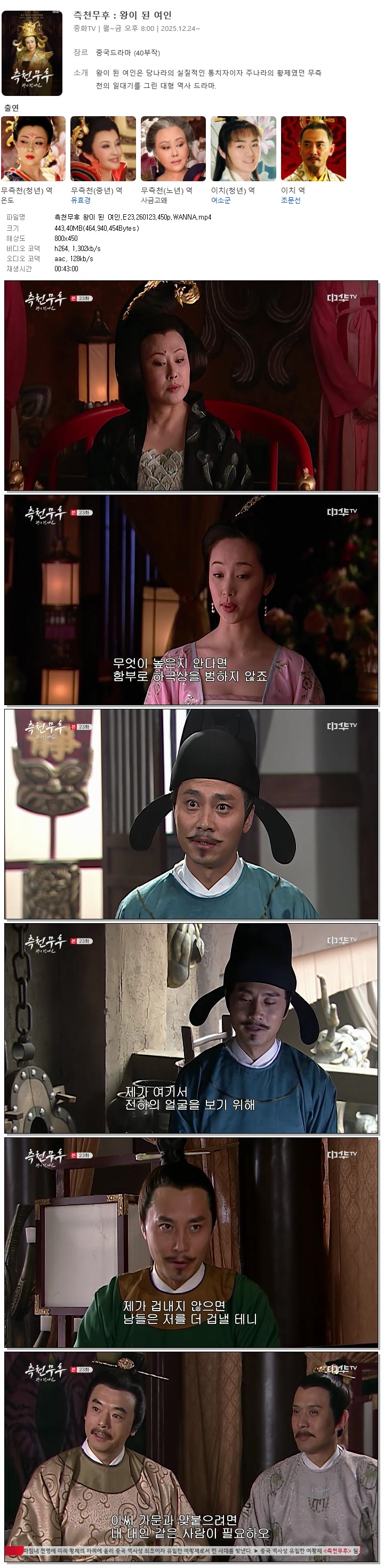 | [중화TV] 측천무후 왕이 된 여인.E23.260123.450p.WANNA[스친가오와].mp4 | 443.4 M | 00:43:00 | 800x450 |