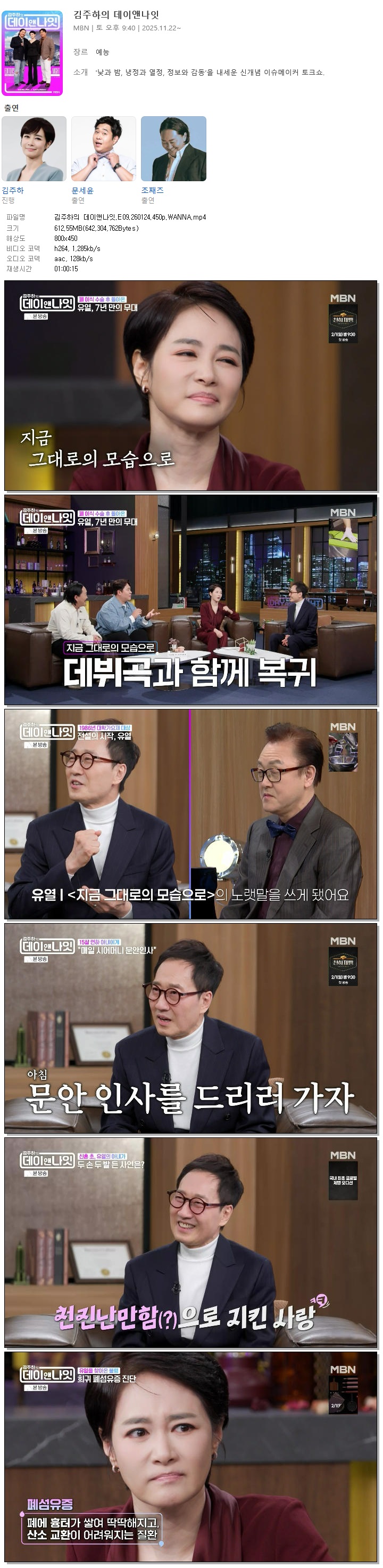 | [MBN] 김주하의 데이앤나잇.E09.260124.450p.WANNA[유열].mp4 | 612.5 M | 01:00:15 | 800x450 |