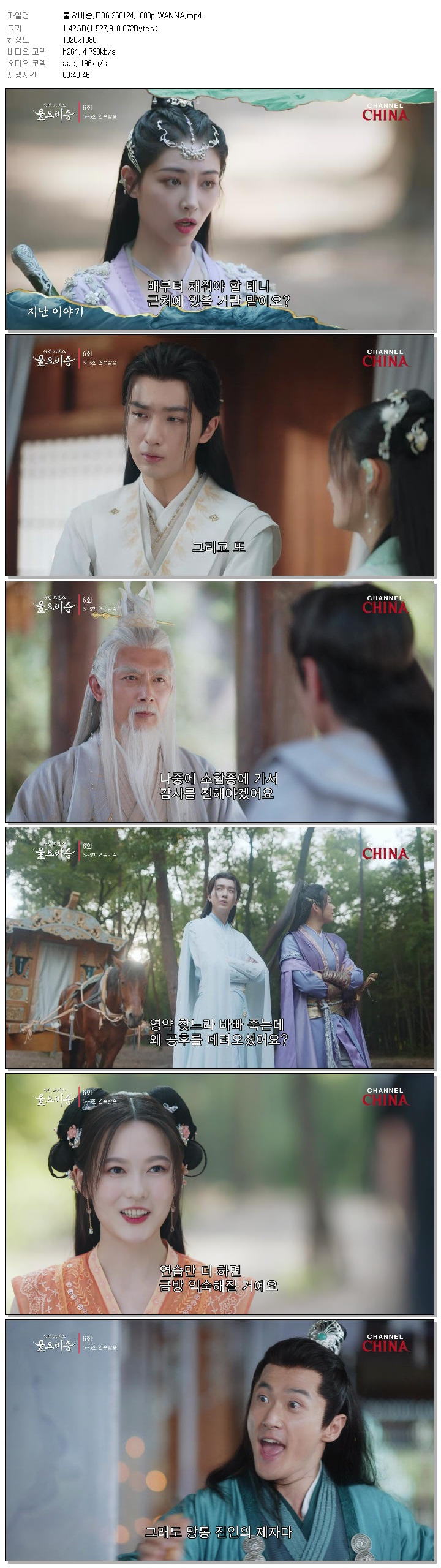 | [채널차이나] 물요비승.E06.260124.1080p.WANNA[이굉의, 육정옥].mp4 | 1.4 G | 00:40:46 | 1920x1080 |