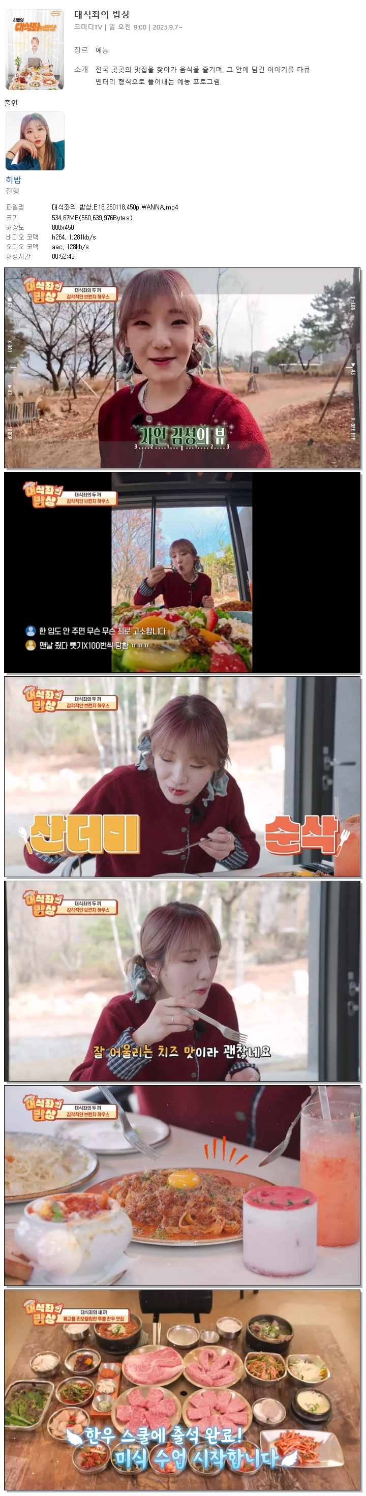 | [코미디TV] 대식좌의 밥상.E18.260118.450p.WANNA[히밥].mp4 | 534.7 M | 00:52:43 | 800x450 |