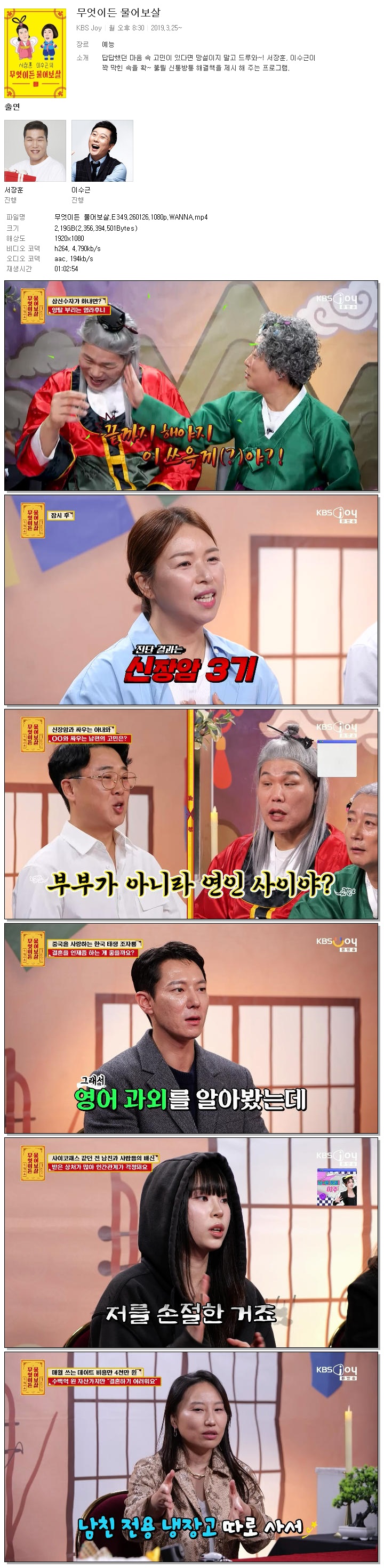 [KBS JOY] 무엇이든 물어보살.E349.260126.1080p.WANNA[서장훈, 이수근].mp4 2.2 G 01:02:54 1920x1080