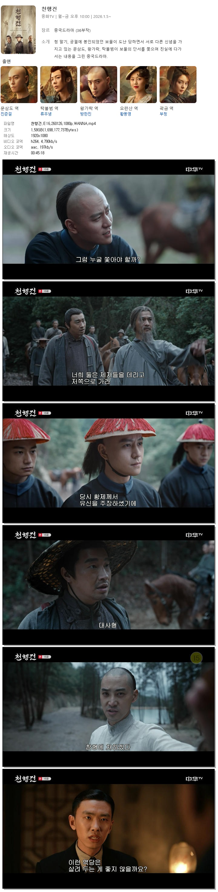 [중화TV] 천행건.E16.260126.1080p.WANNA[진준걸, 류우녕] 다시보기 토렌트