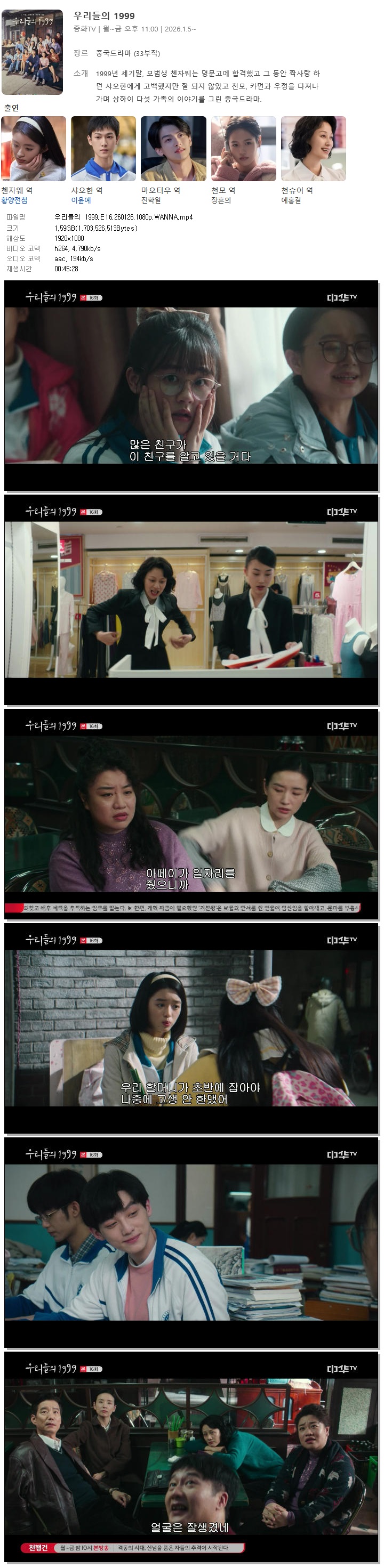 [중화TV] 우리들의 1999.E16.260126.1080p.WANNA[황양전첨, 이윤예].mp4 1.6 G 00:45:28 1920x1080