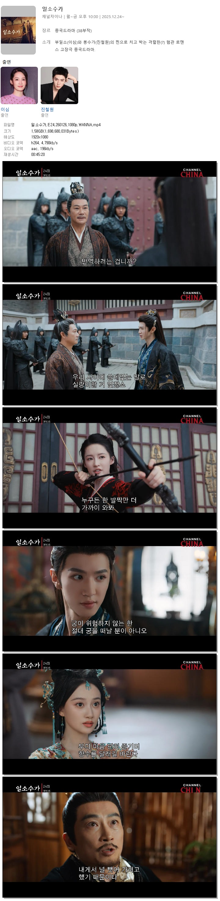 [채널차이나] 일소수가.E24.260126.1080p.WANNA[이심, 진철원] 다시보기 토렌트