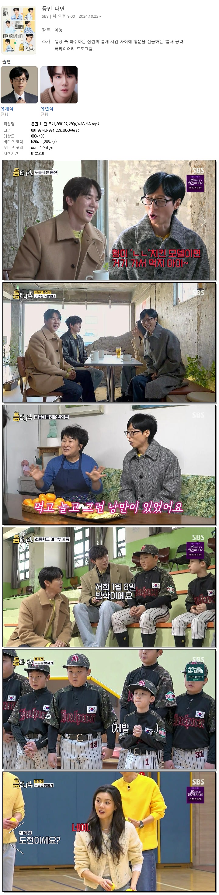 [SBS] 틈만 나면.E41.260127.450p.WANNA[이선빈, 김영대] 다시보기 토렌트