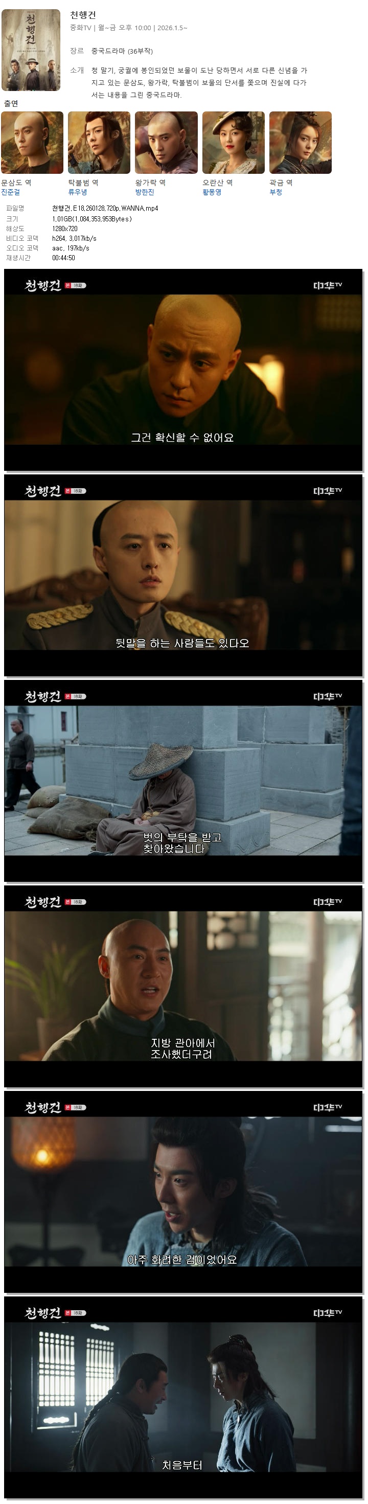 [중화TV] 천행건.E18.260128.720p.WANNA[진준걸, 류우녕] 다시보기 토렌트