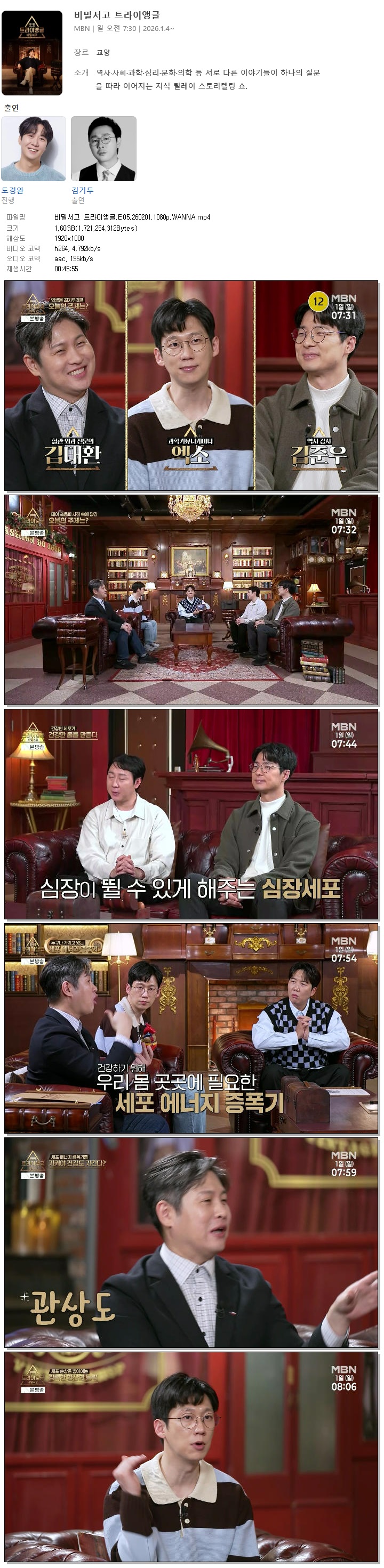 [MBN] 비밀서고 트라이앵글.E05.260201.1080p.WANNA[도경완, 김기두] 다시보기 토렌트