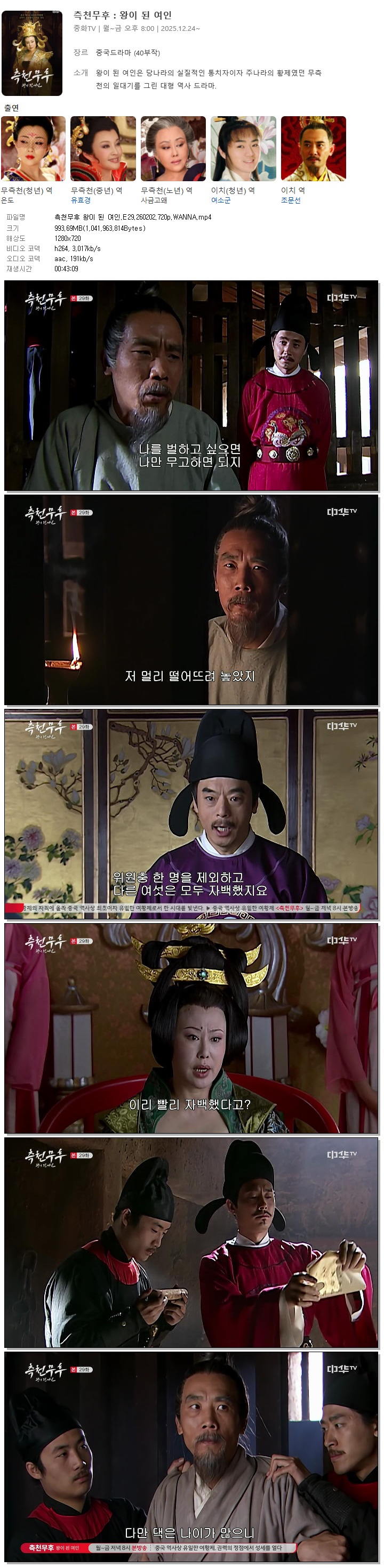 | [중화TV] 측천무후 왕이 된 여인.E29.260202.720p.WANNA[스친가오와].mp4 | 993.7 M | 00:43:09 | 1280x720 |