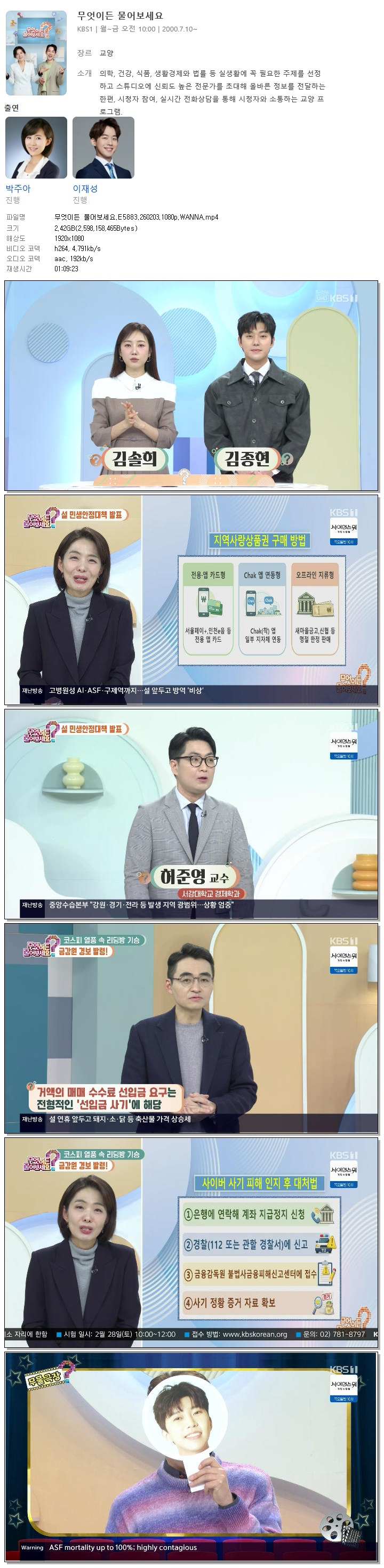 [KBS1] 무엇이든 물어보세요.E5883.260203.1080p.WANNA[박주아, 이재성].mp4 2.4 G 01:09:23 1920x1080