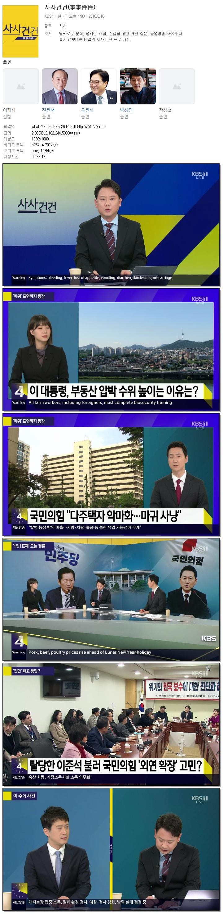 | [KBS1] 사사건건.E1825.260203.1080p.WANNA.mp4 | 2 G | 00:58:15 | 1920x1080 |
