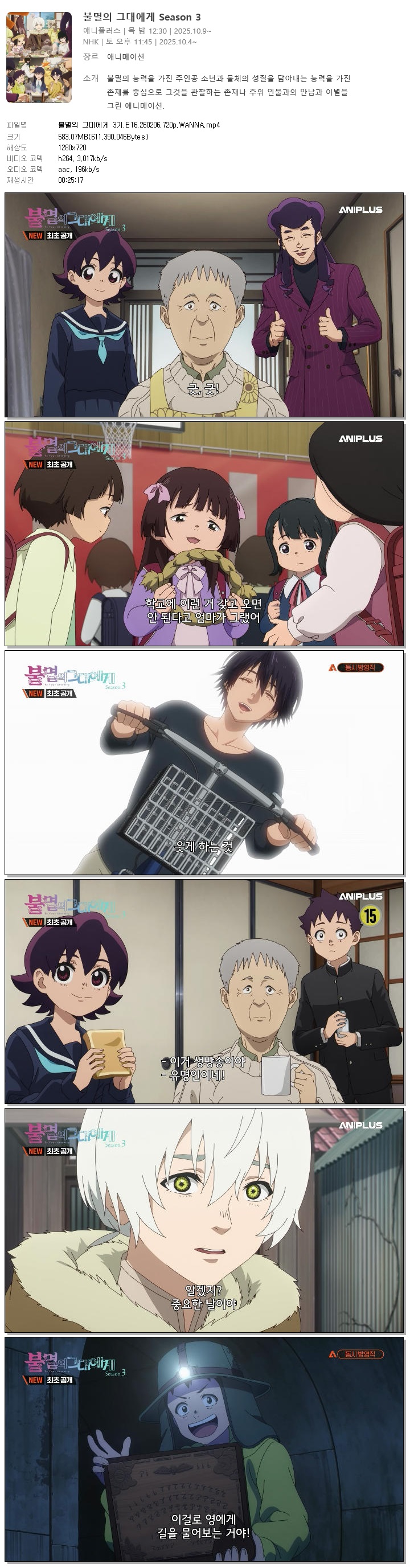 | 불멸의 그대에게 3기.E16.260206.720p.WANNA.mp4 | 583.1 M | 00:25:17 | 1280x720 |