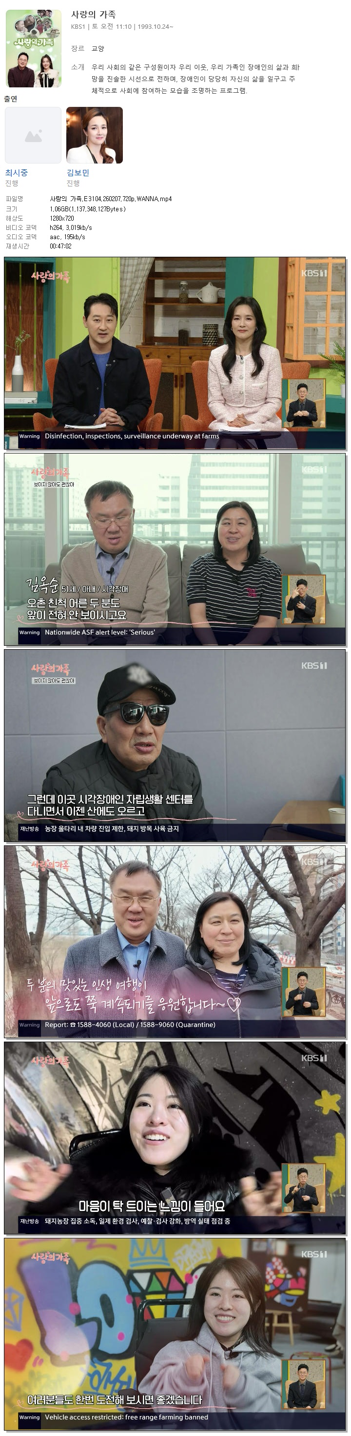 | [KBS1] 사랑의 가족.E3104.260207.720p.WANNA[최시중, 김보민].mp4 | 1.1 G | 00:47:02 | 1280x720 |
