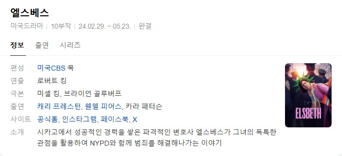 [미드] 엘스베스 시즌1.10부작완결.Elsbeth.S01.2024.1080p.한글자막 다시보기 토렌트