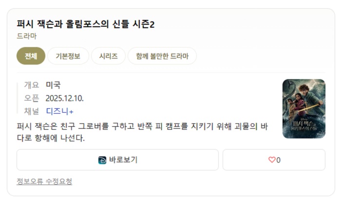 [퍼.시.잭.슨과 올.림.포.스의 신들 시즌2] 초저용량 8부작 완결 자체자막 다시보기 토렌트
