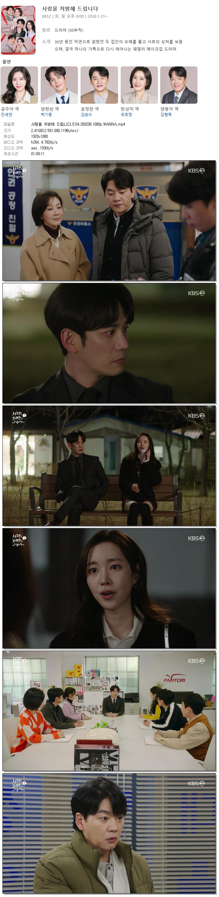 [KBS2] 사랑을 처방해 드립니다.E04.260208.1080p.WANNA[진세연, 박기웅].mp4 2.4 G 01:09:11 1920x1080