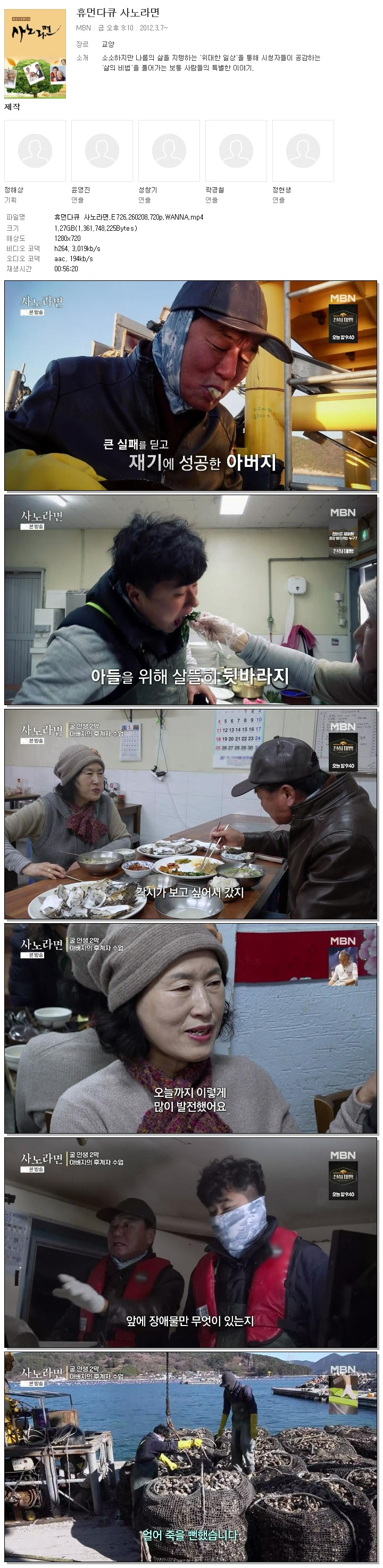 | [MBN] 휴먼다큐 사노라면.E726.260208.720p.WANNA.mp4 | 1.3 G | 00:56:20 | 1280x720 |