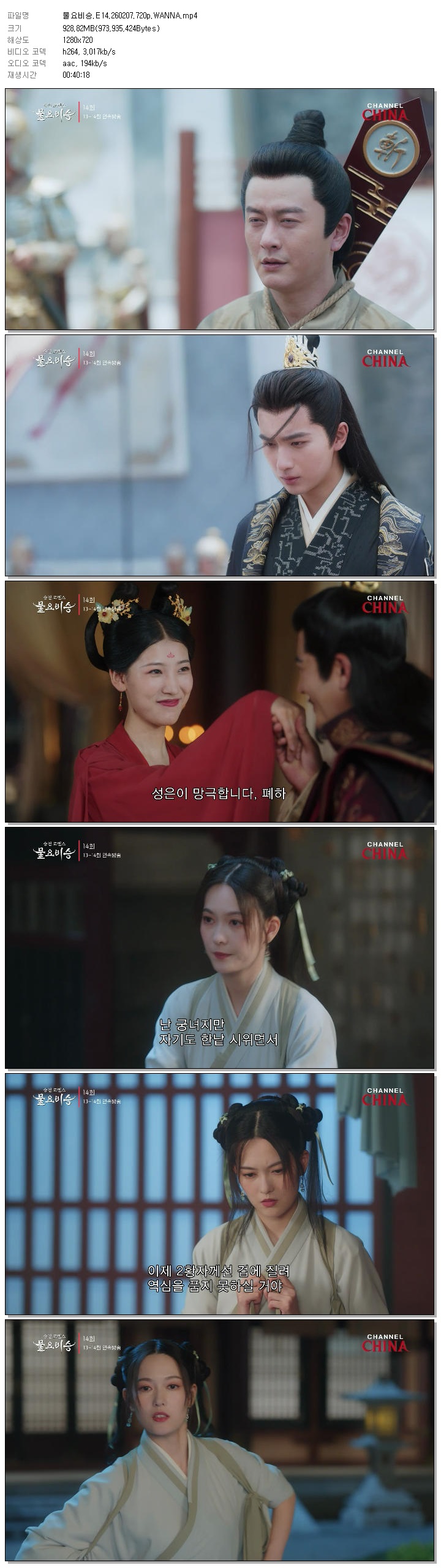 | [채널차이나] 물요비승.E14.260207.720p.WANNA[이굉의, 육정옥].mp4 | 928.8 M | 00:40:18 | 1280x720 |