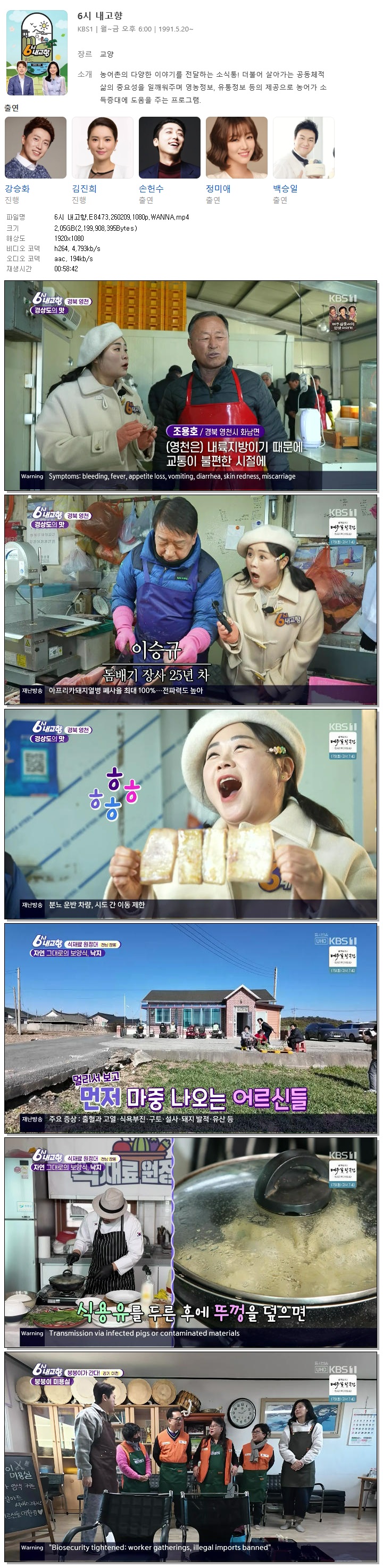 | [KBS1] 6시 내고향.E8473.260209.1080p.WANNA[강승화, 김진희].mp4 | 2 G | 00:58:42 | 1920x1080 |