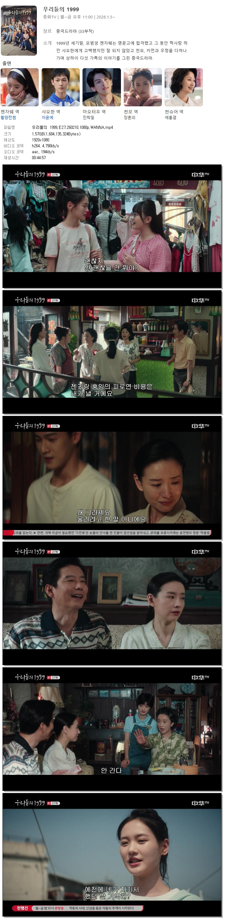 [중화TV] 우리들의 1999.E27.260210.1080p.WANNA[황양전첨, 이윤예].mp4 1.6 G 00:44:57 1920x1080
