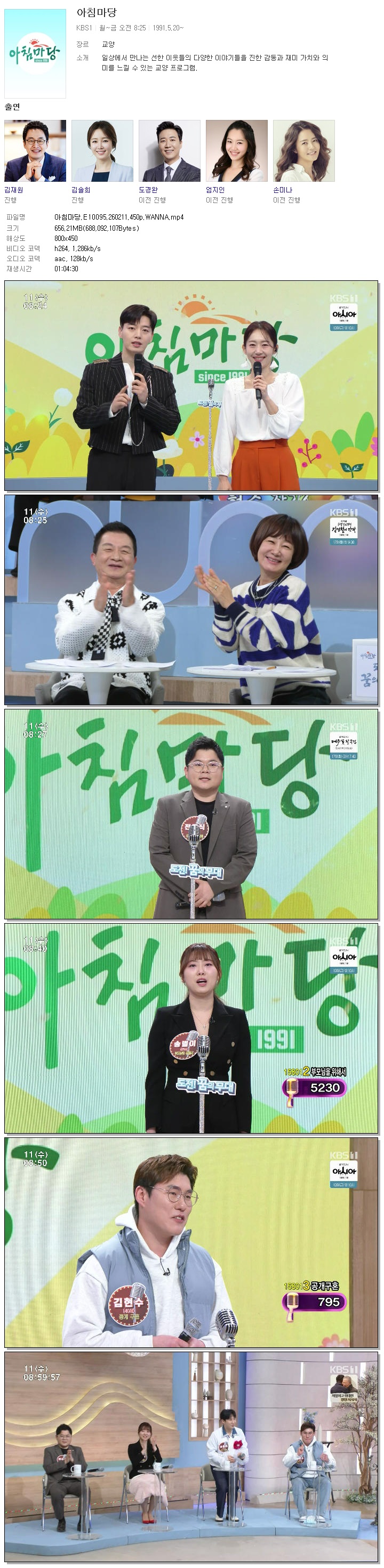 | [KBS1] 아침마당.E10095.260211.450p.WANNA[김재원, 엄지인].mp4 | 656.2 M | 01:04:30 | 800x450 |