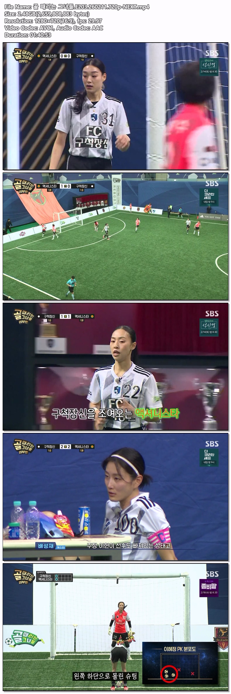 | 골 때리는 그녀들.E203.260211.720p-NEXT.mp4 | 2.5 G | 01:40:53 | 1280x720 |