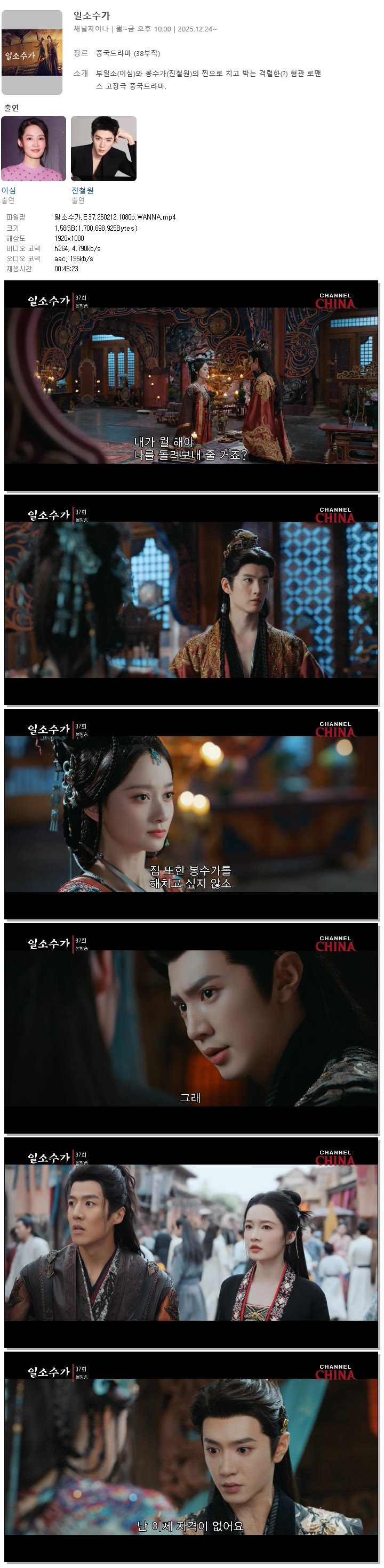 [채널차이나] 일소수가.E37.260212.1080p.WANNA[이심, 진철원] 다시보기 토렌트