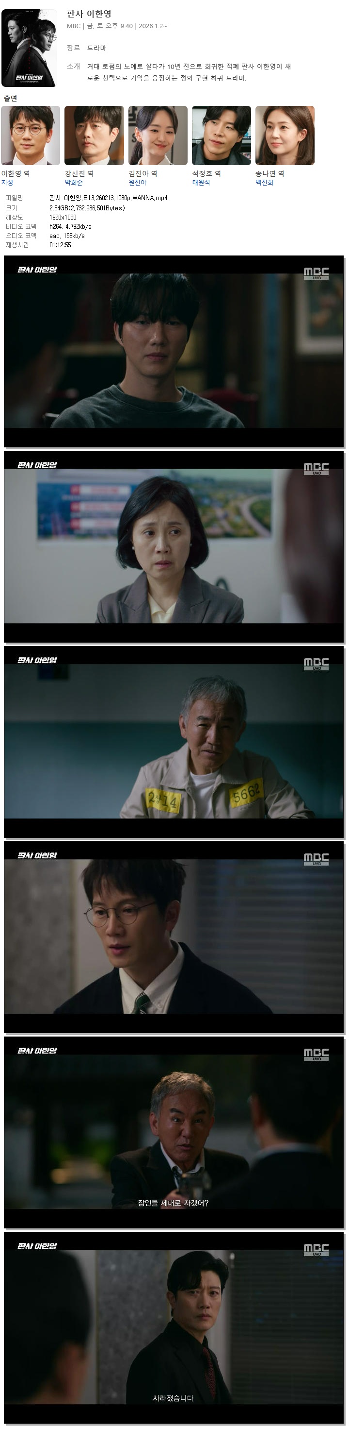 [MBC] 판사 이한영.E13.260213.1080p.WANNA[지성, 원진아] 다시보기 토렌트