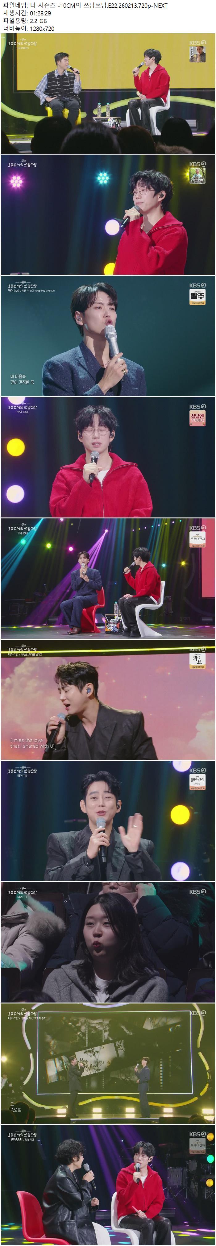| 더 시즌즈 -10CM의 쓰담쓰담.E22.260213.720p-NEXT.mp4 | 2.2 G | 01:28:29 | 1280x720 |