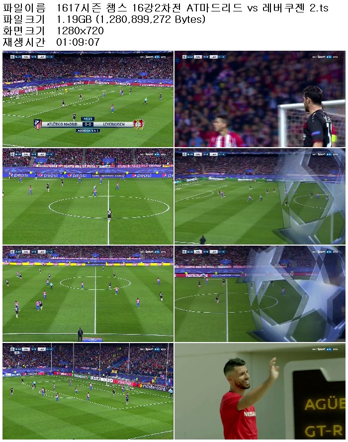 | 1617시즌 챔스 16강2차전 AT마드리드 vs 레버쿠젠 2.ts | 1.2 G | 01:09:07 | 1280x720 |