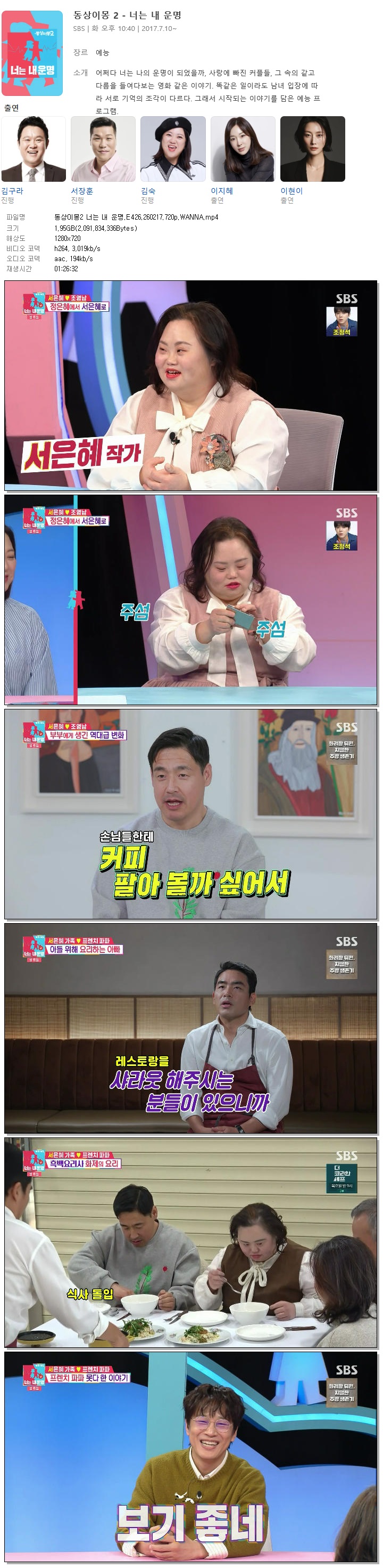 [SBS] 동상이몽2 너는 내 운명.E426.260217.720p.WANNA[정은혜, 타미 리] 다시보기 토렌트