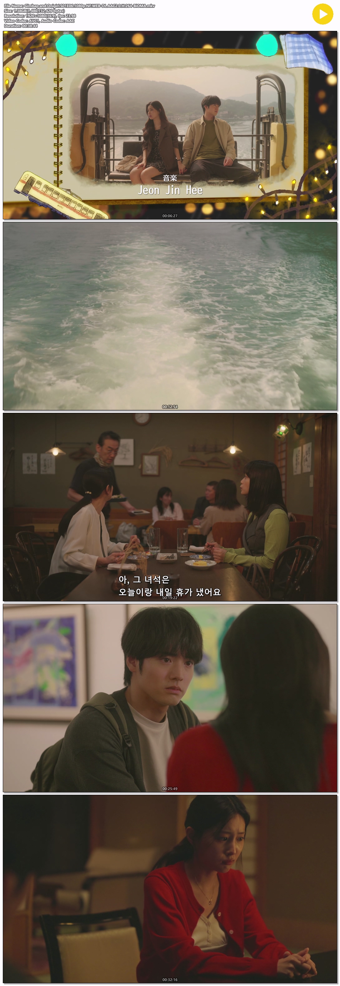 | Gimbap.and.Onigiri.S01E06.1080p.NF.WEB-DL.AAC2.0.H.264-BiOMA.mkv | 1.4 G | 00:38:44 | 1920x1080 |