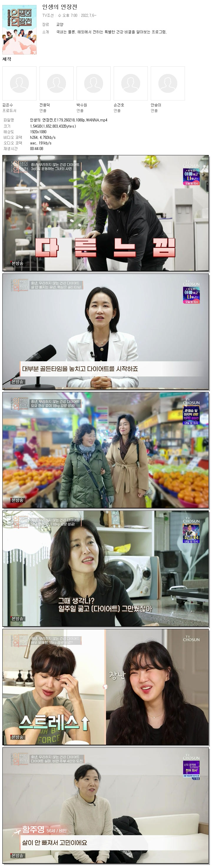 | [TV조선] 인생의 연장전.E179.260218.1080p.WANNA.mp4 | 1.5 G | 00:44:08 | 1920x1080 |