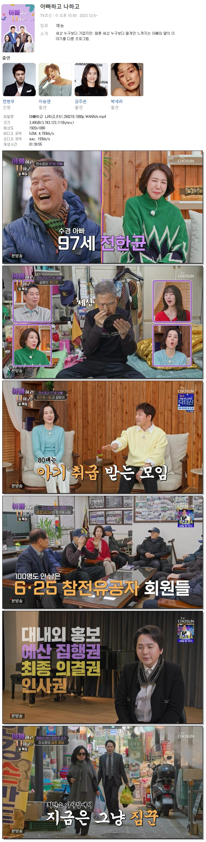 | [TV조선] 아빠하고 나하고.E61.260218.1080p.WANNA[전현무, 이승연].mp4 | 3.5 G | 01:39:55 | 1920x1080 |