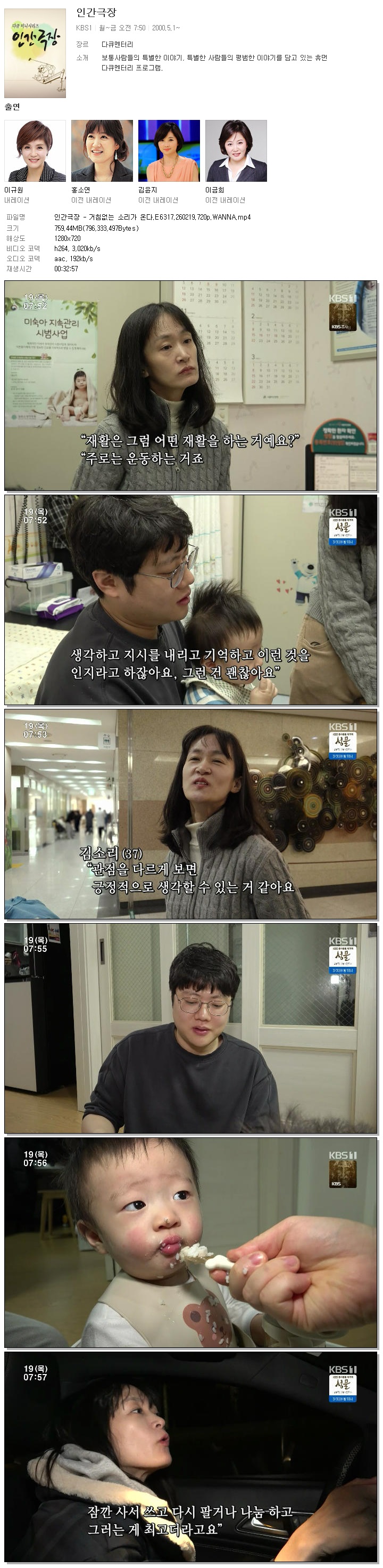| [KBS1] 인간극장.E6317.260219.720p.WANNA.mp4 | 759.4 M | 00:32:57 | 1280x720 |
