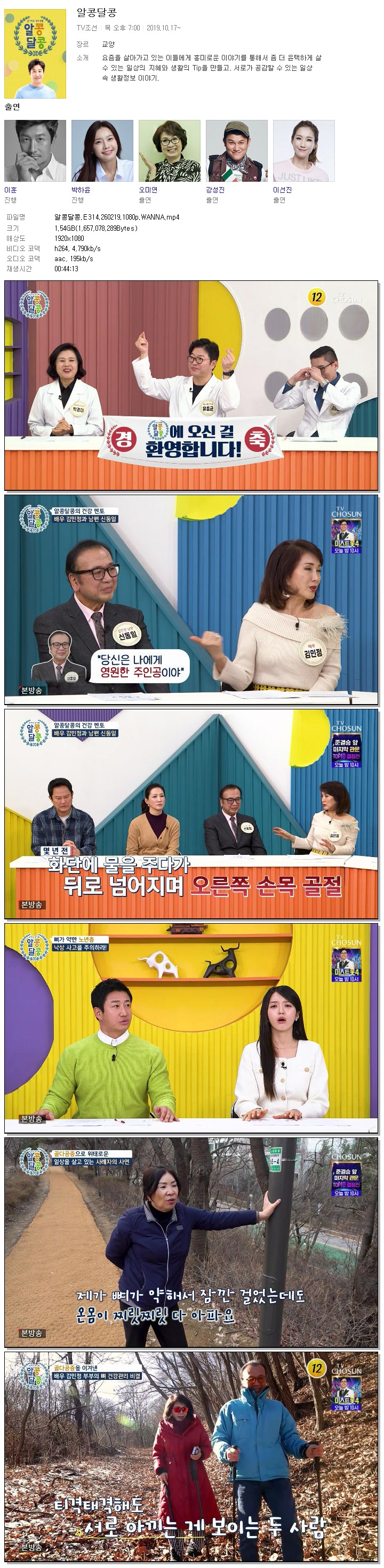 | [TV조선] 알콩달콩.E314.260219.1080p.WANNA[이훈, 지원이].mp4 | 1.5 G | 00:44:13 | 1920x1080 |