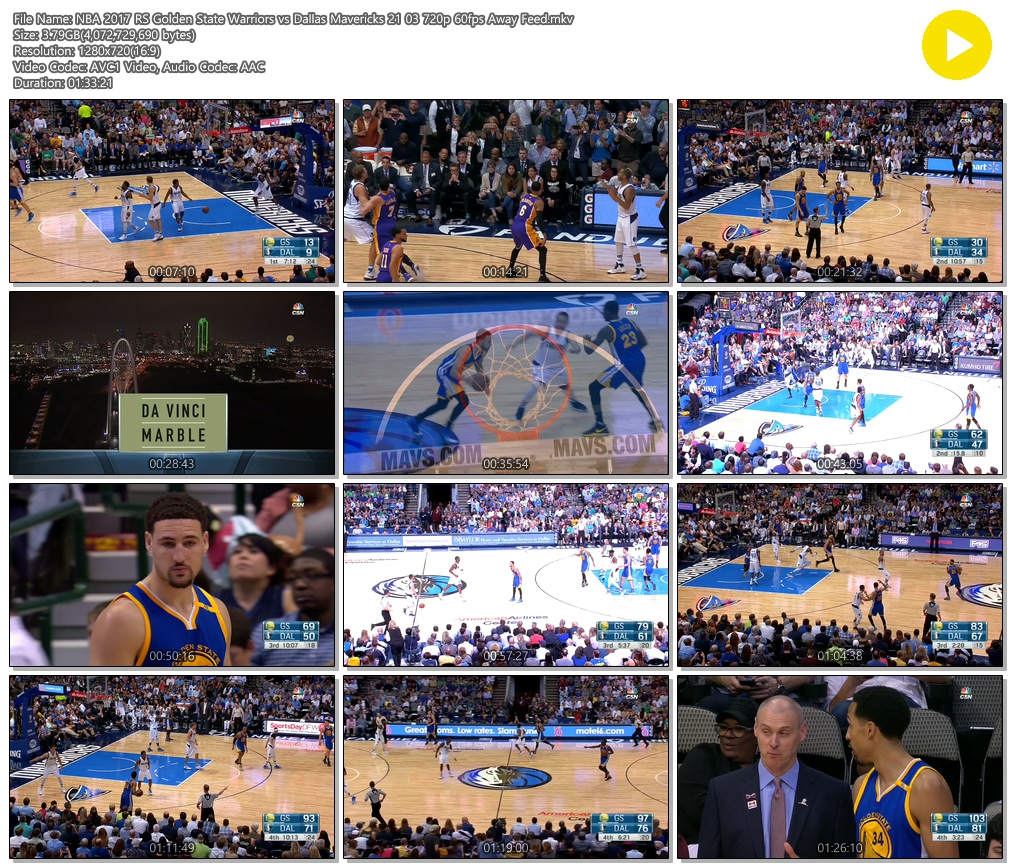 NBA 2017 RS Golden State Warriors vs Dallas Mavericks 21 03 720p 60fps Away Feed.mkv 3.8 G 01:33:21 1280x720