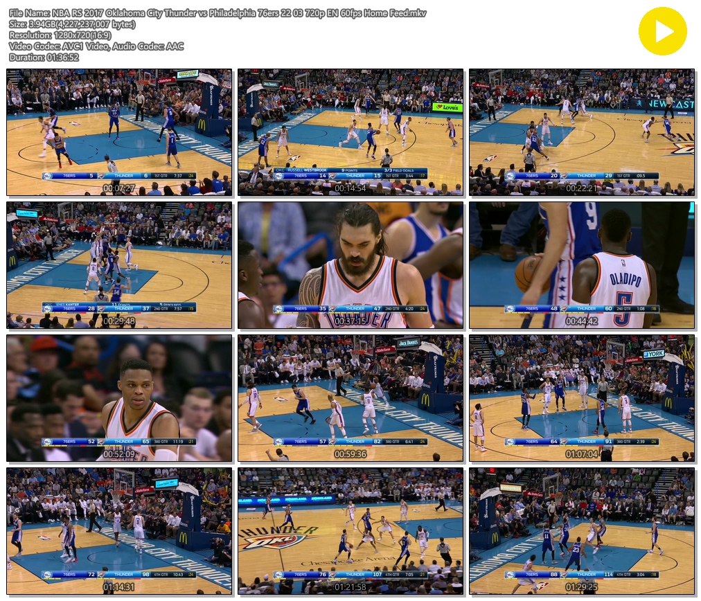 | NBA RS 2017 Oklahoma City Thunder vs Philadelphia 76ers 22 03 720p EN 60fps Home Feed.mkv | 3.9 G | 01:36:52 | 1280x720 |