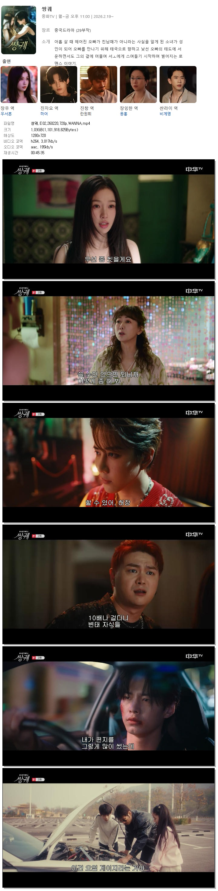 [중화TV] 쌍궤.E02.260220.720p.WANNA[우서흔, 하여] 다시보기 토렌트