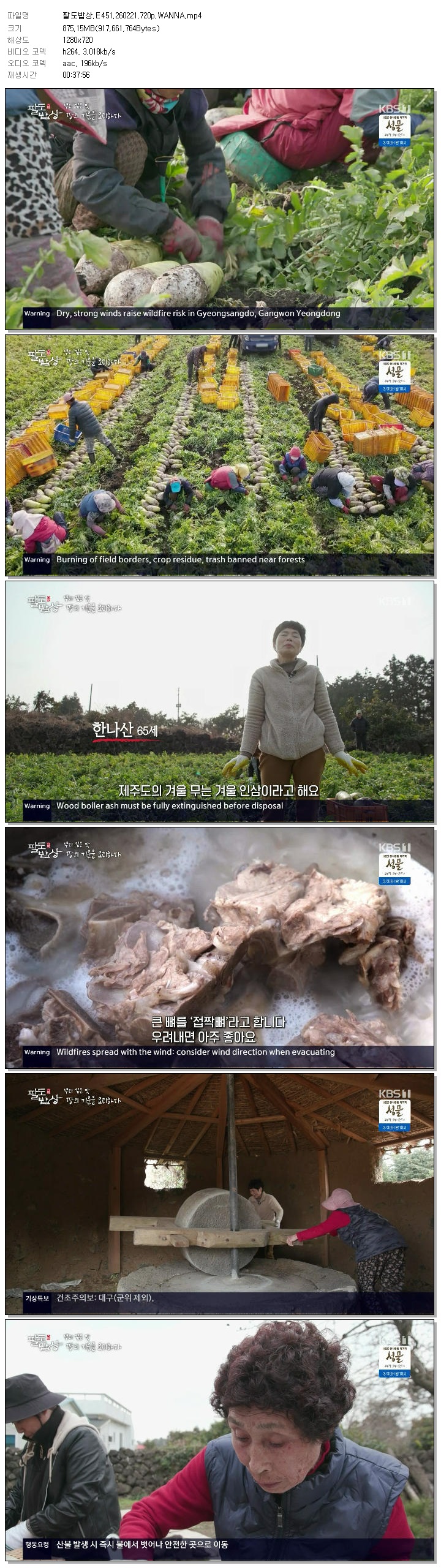 | [KBS1] 팔도밥상.E451.260221.720p.WANNA.mp4 | 875.2 M | 00:37:56 | 1280x720 |