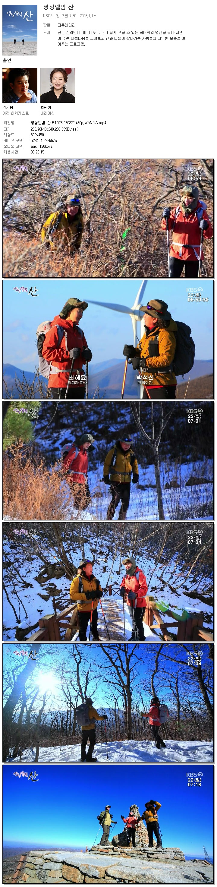 [KBS2] 영상앨범 산.E1025.260222.450p.WANNA.mp4 236.8 M 00:23:15 800x450