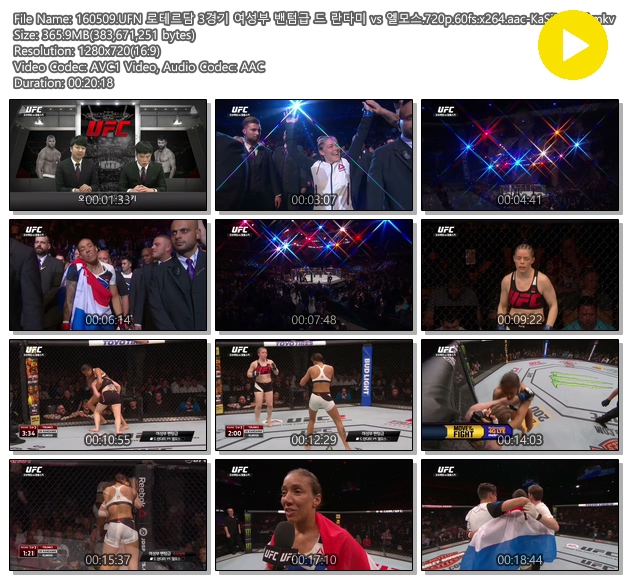 | 160509.UFN 로테르담 3경기 여성부 밴텀급 드 란다미 vs 엘모스.720p.60fs.x264.aac-KaSiMTaNi.mkv | 365.9 M | 00:20:18 | 1280x720 |
