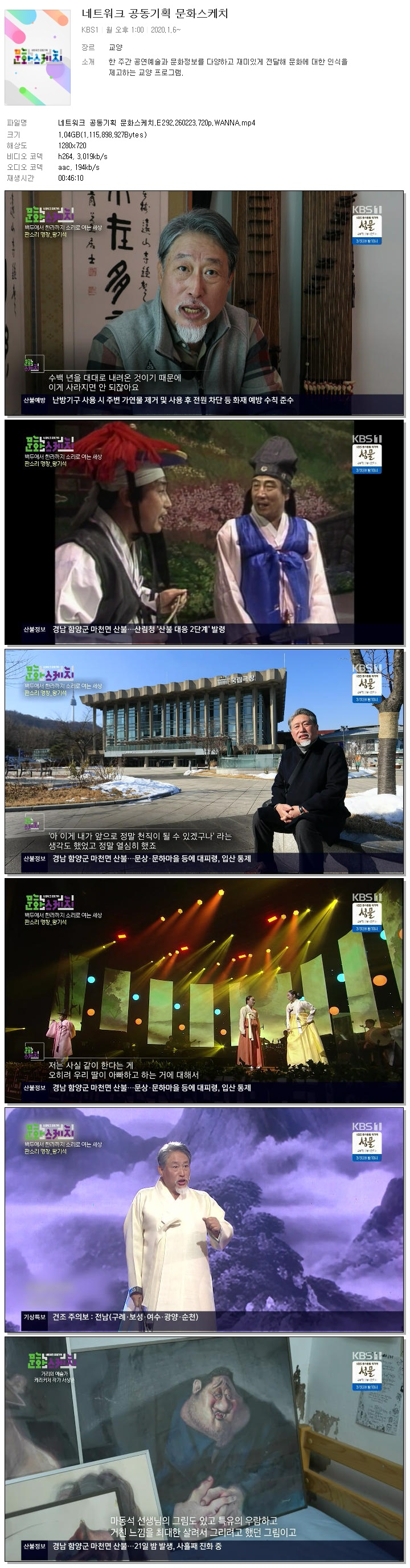 [KBS1] 네트워크 공동기획 문화스케치.E292.260223.720p.WANNA.mp4 1 G 00:46:10 1280x720