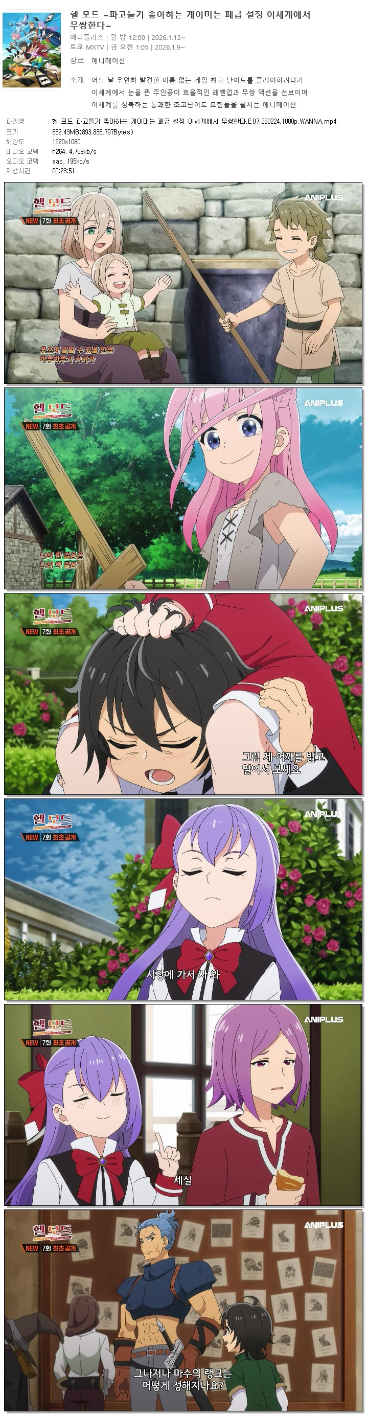 헬 모드 파고들기 좋아하는 게이머는 폐급 설정 이세계에서 무쌍한다.E07.260224.1080p.WANNA 다시보기 토렌트
