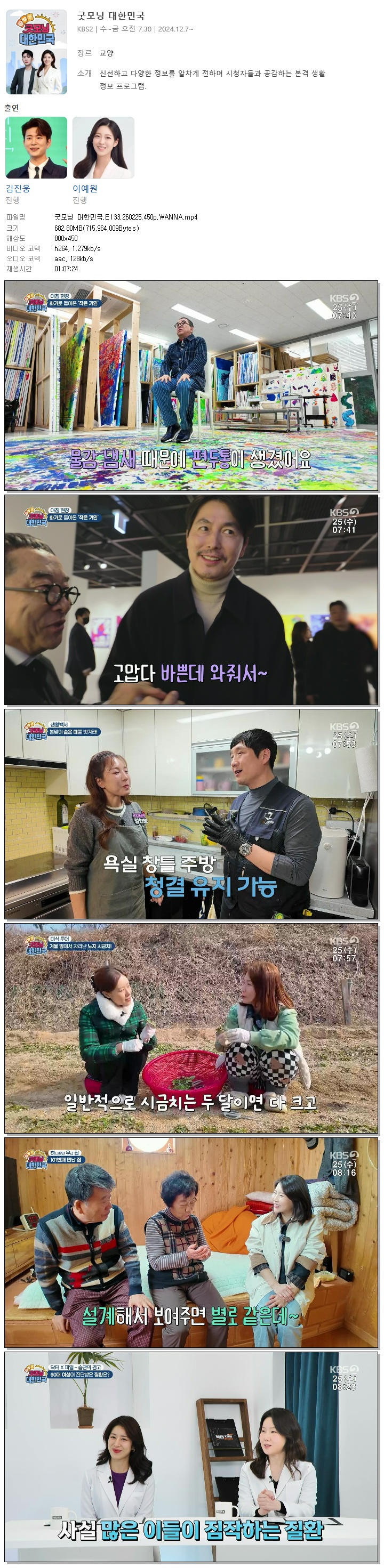 | [KBS2] 굿모닝 대한민국.E133.260225.450p.WANNA[김진웅, 이예원].mp4 | 682.8 M | 01:07:24 | 800x450 |